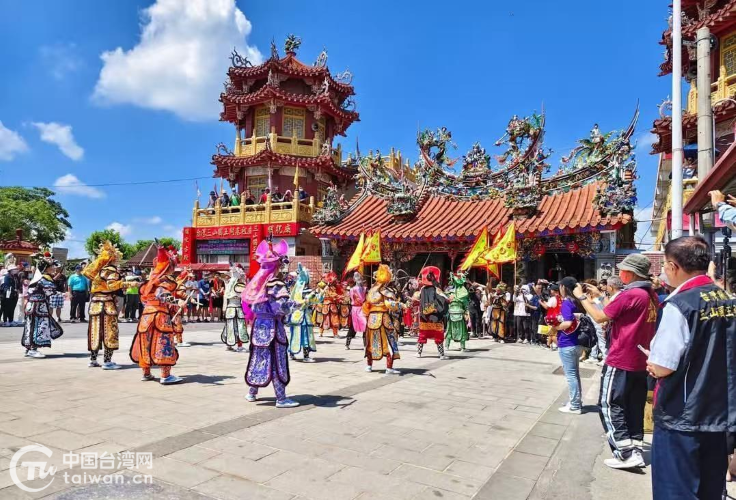 濠江区珠浦社区新宏胜英歌队在台湾交流演出。(中国台湾网发)