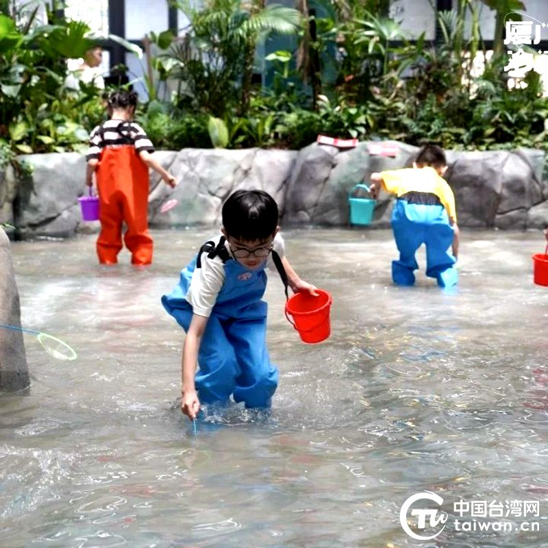 感受童趣盎然,体验“赶海”乐趣。换上赶海服,拎上小桶和网兜,两岸金胞青少年们瞬间化身为潮汐小猎人,在人造潮池边开启一场触手可及的海洋探险。