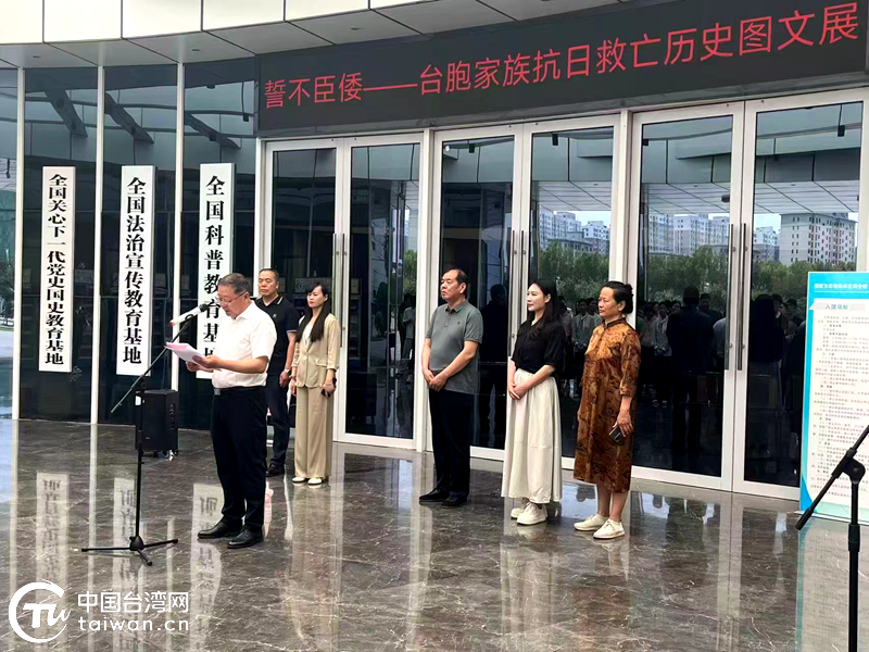中国台湾网6月12日讯 6月10日上午,焦作市“誓不臣倭——台胞家族抗日救亡历史图文展”启动仪式在国家方志馆南水北调分馆举行。焦作市台办主任买占营在启动仪式上讲话。